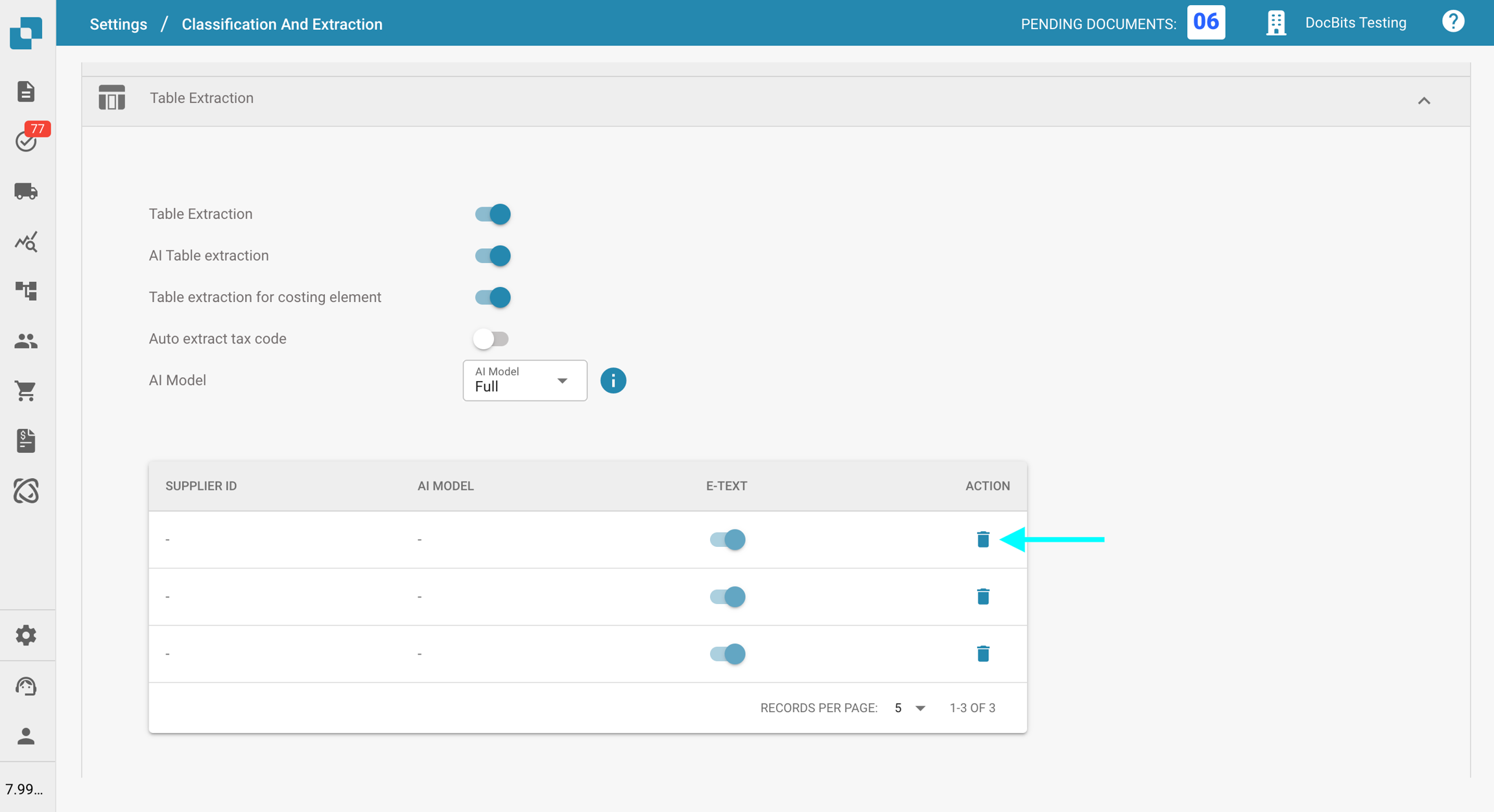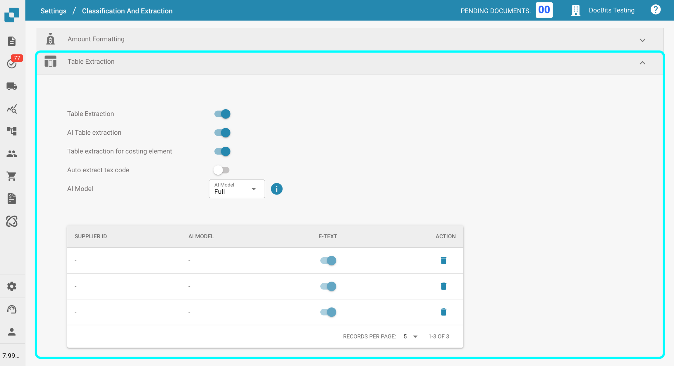 Vous pouvez également configurer des modèles d'IA spécifiques au fournisseur directement dans l'écran de Validation, ce qui vous permet d'affiner la précision de l'extraction pour des fournisseurs individuels. Pour plus d'informations, veuillez consulter la documentation correspondante ici.