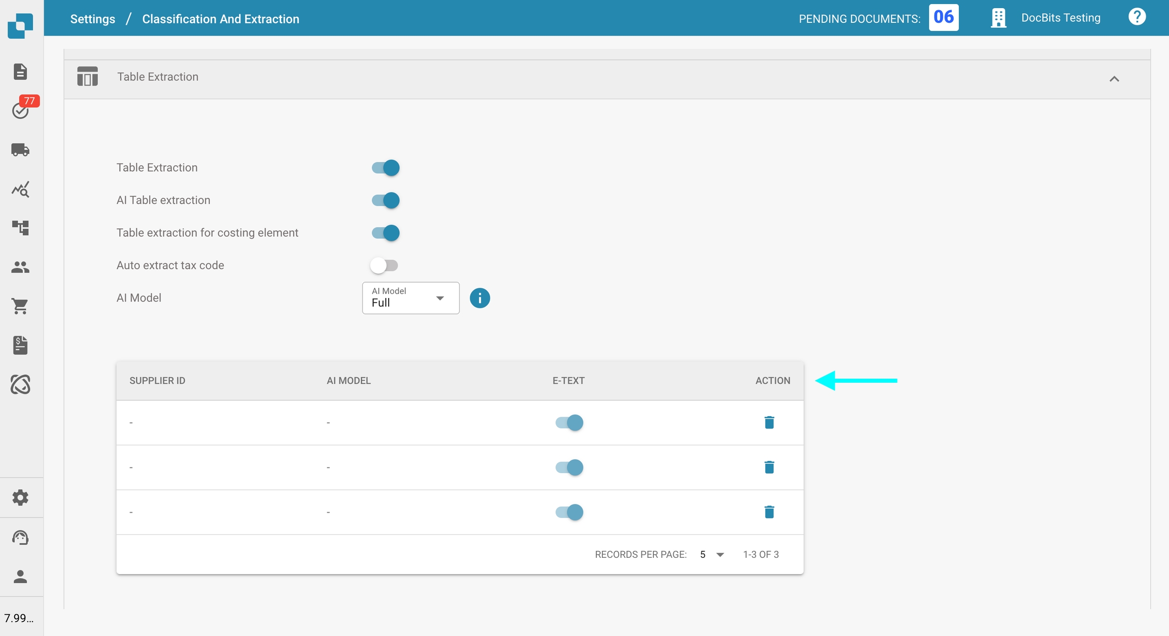 Une fois supprimé, le fournisseur reviendra à l'utilisation du modèle d'IA par défaut si l'extraction de table AI est en cours d'utilisation.