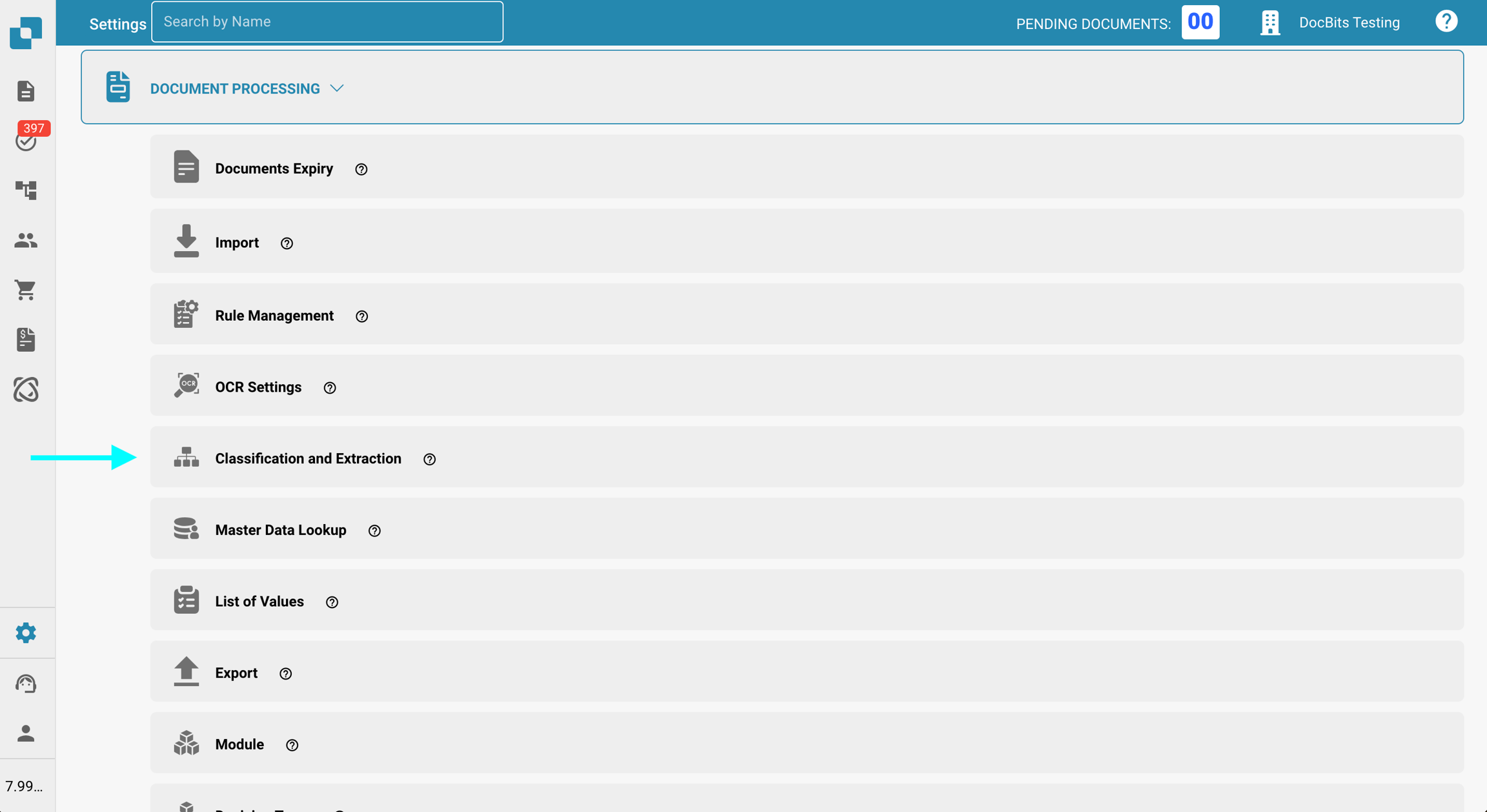 Naviguez vers Paramètres → Traitement des documents → Classification et extraction