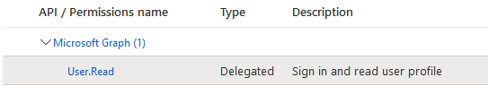 Par défaut, l'autorisation User.Read de Microsoft Graph est présente, laissez-la telle quelle.