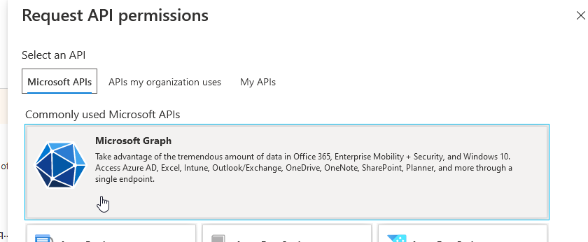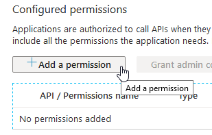 Cliquez sur + Add a permission. Cela ouvrira le panneau Request API permissions.