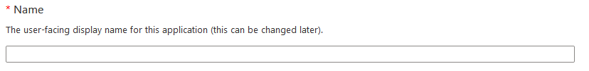 L'écran Register an application s'affiche. Entrez le nom d'affichage destiné à l'utilisateur pour l'App dans Name.