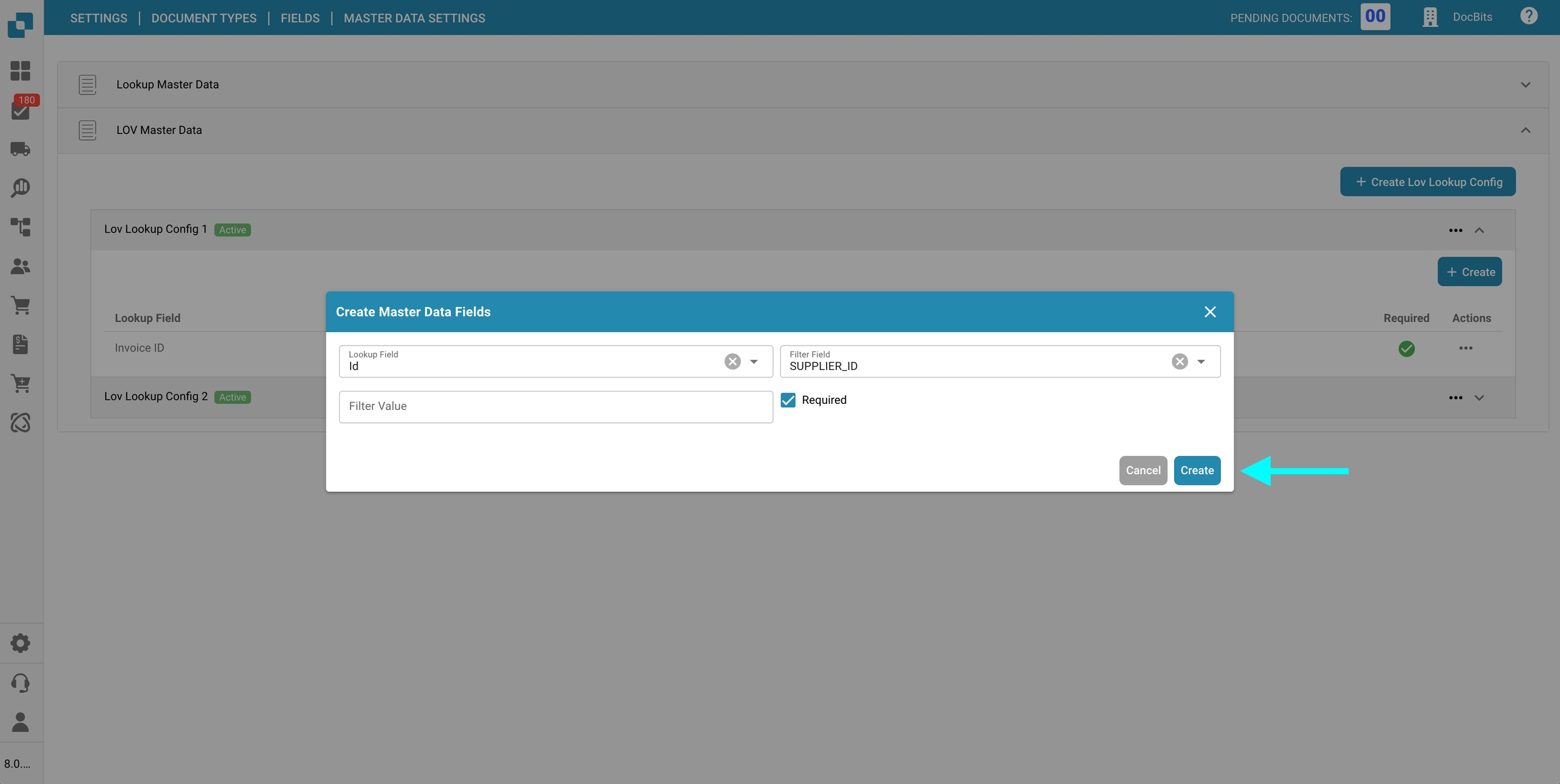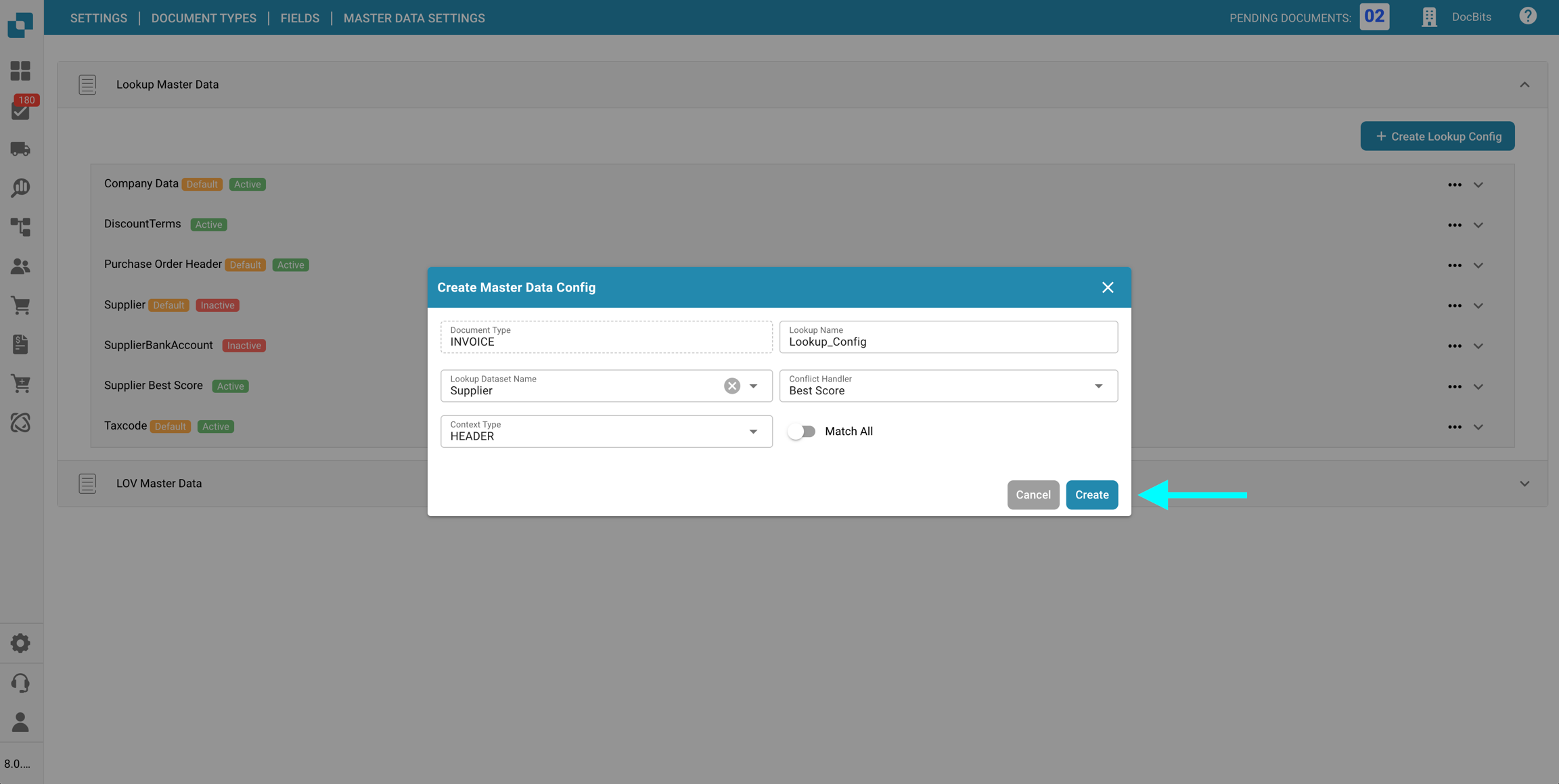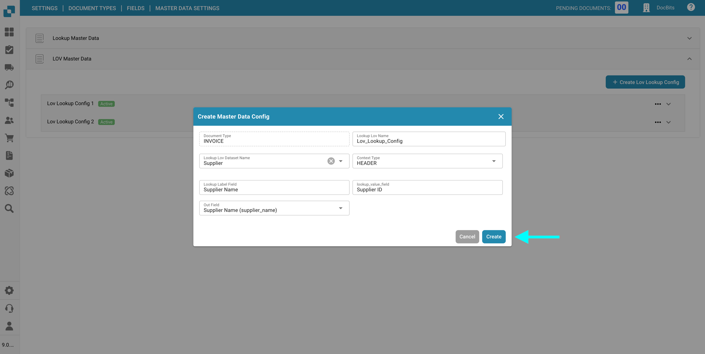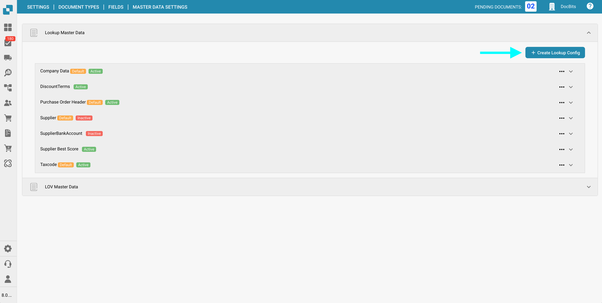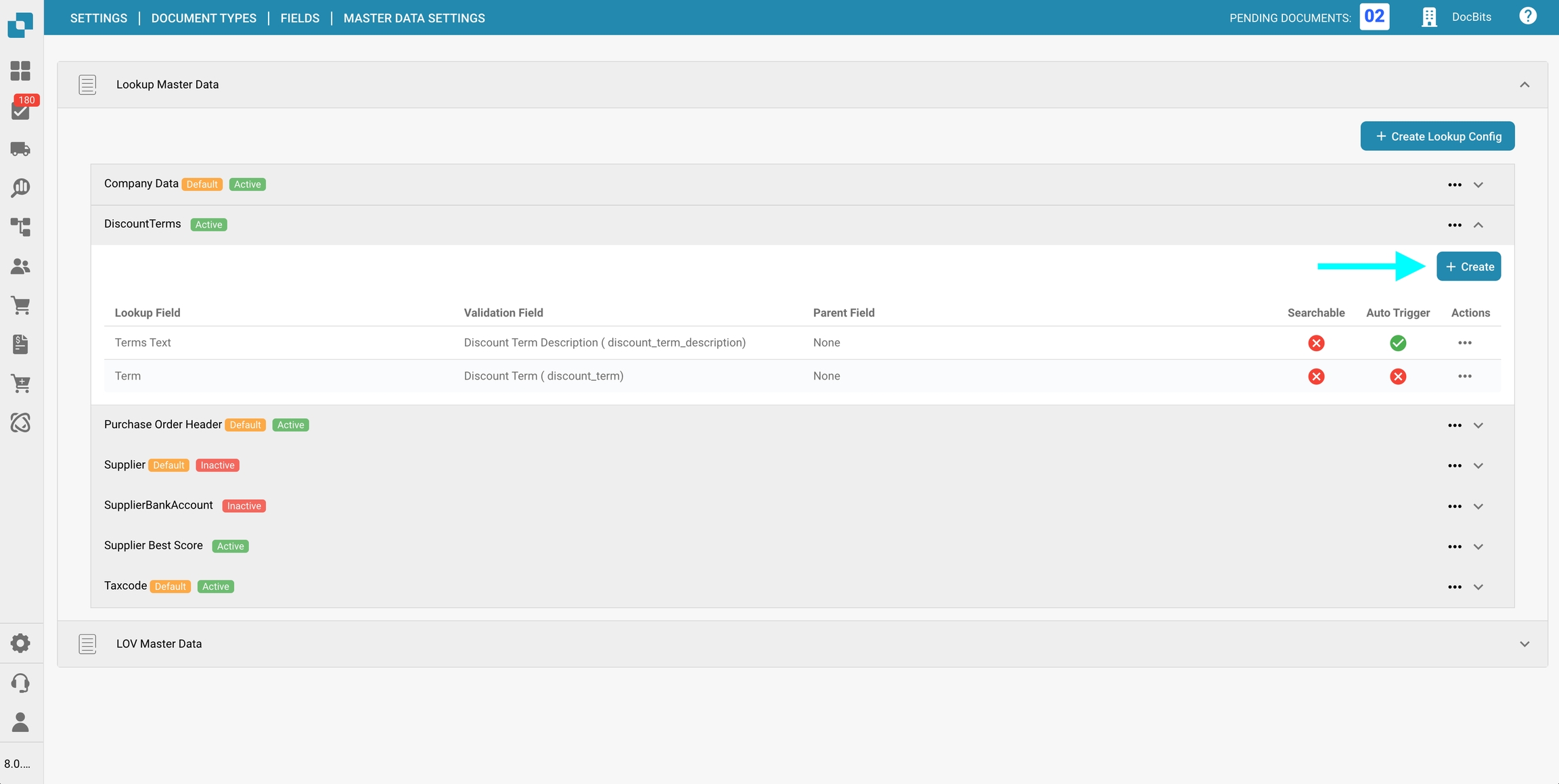 Dans la section Consultation des données de base, vous pouvez créer des configurations de consultation à partir de vos données de base pour les utiliser comme mappages de champs lors de la validation des champs.