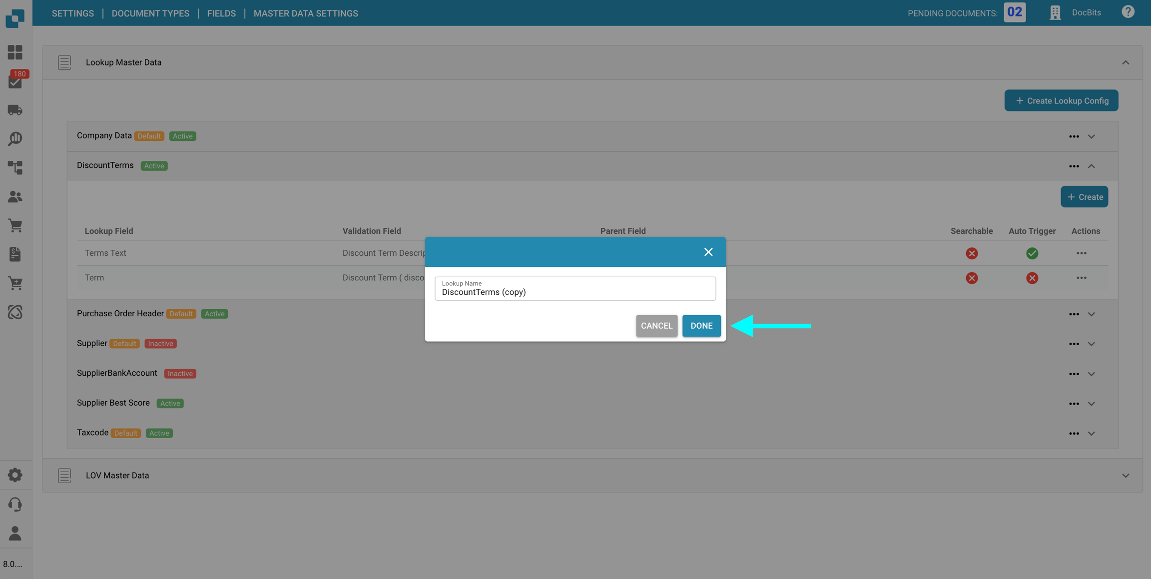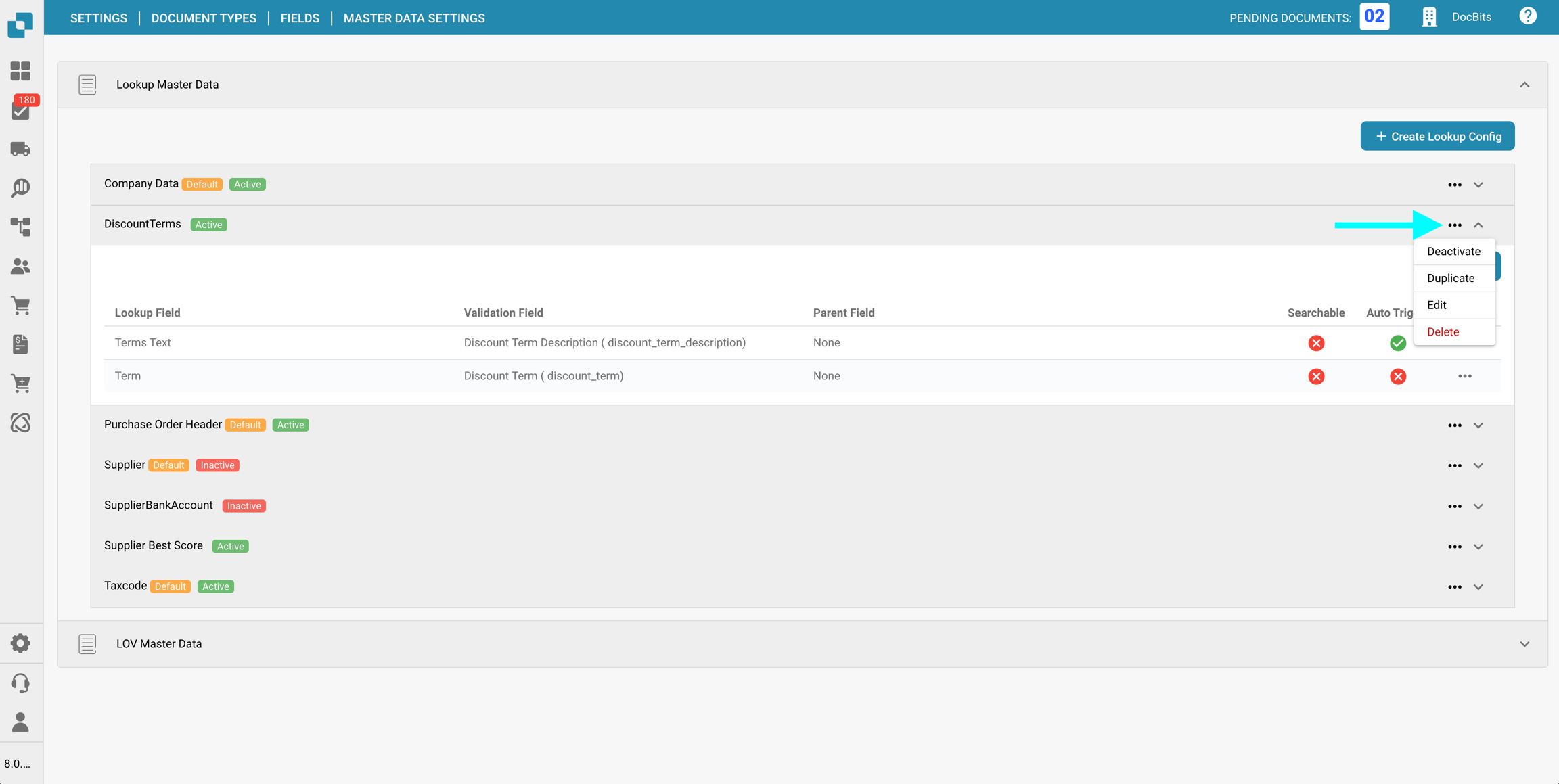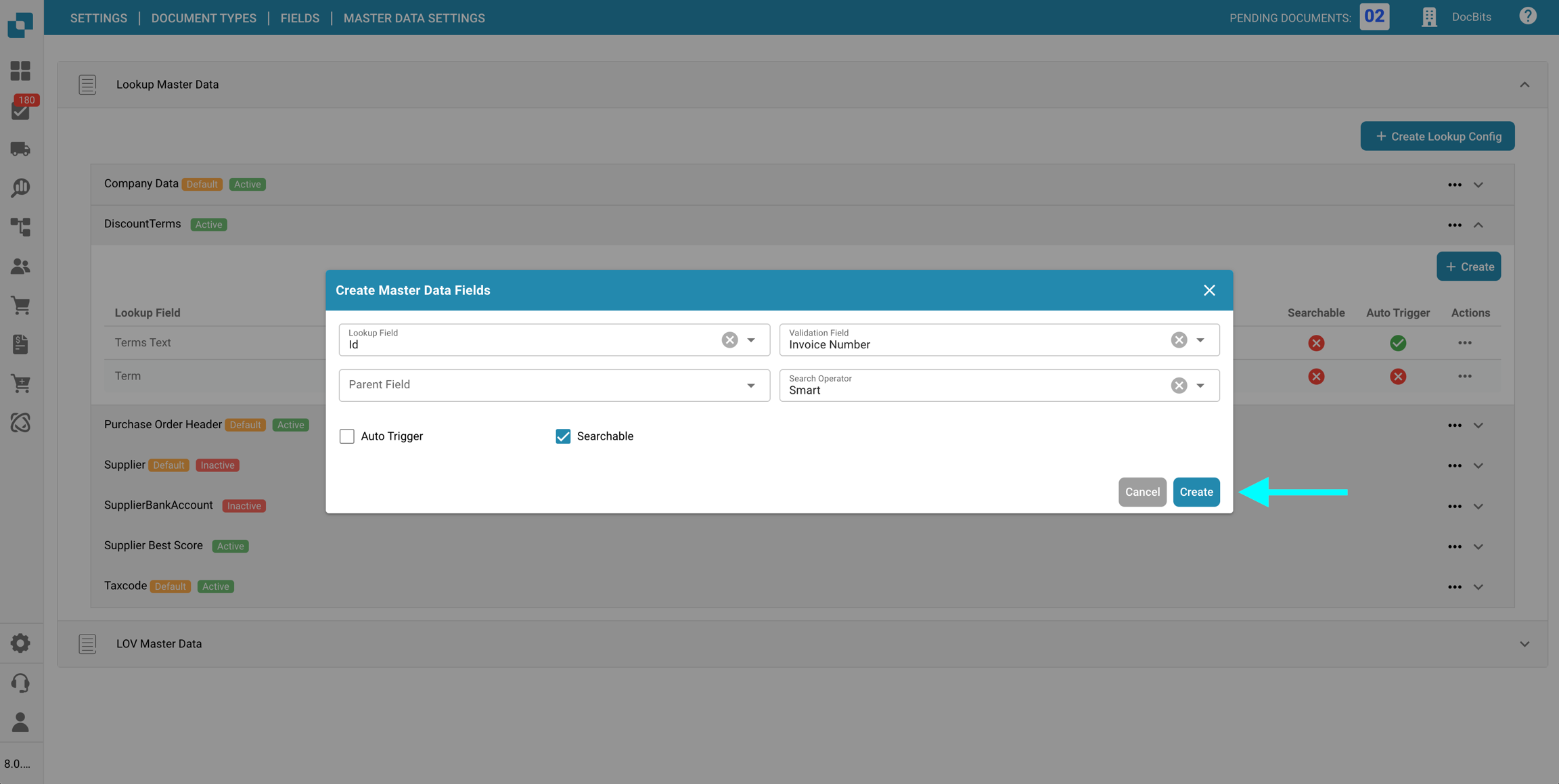 Déclenchement automatique (facultatif) Lorsqu’il est activé, DocBits remplira automatiquement tous les champs de la configuration de consultation dès que ce champ est renseigné.