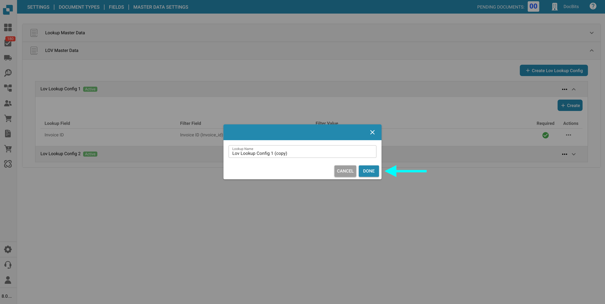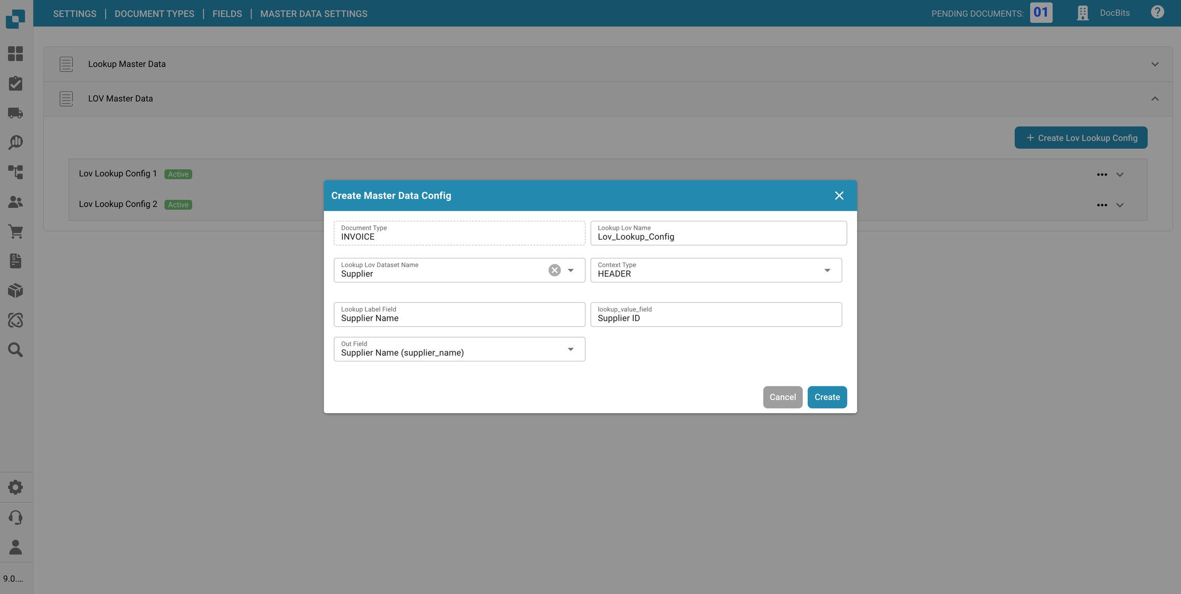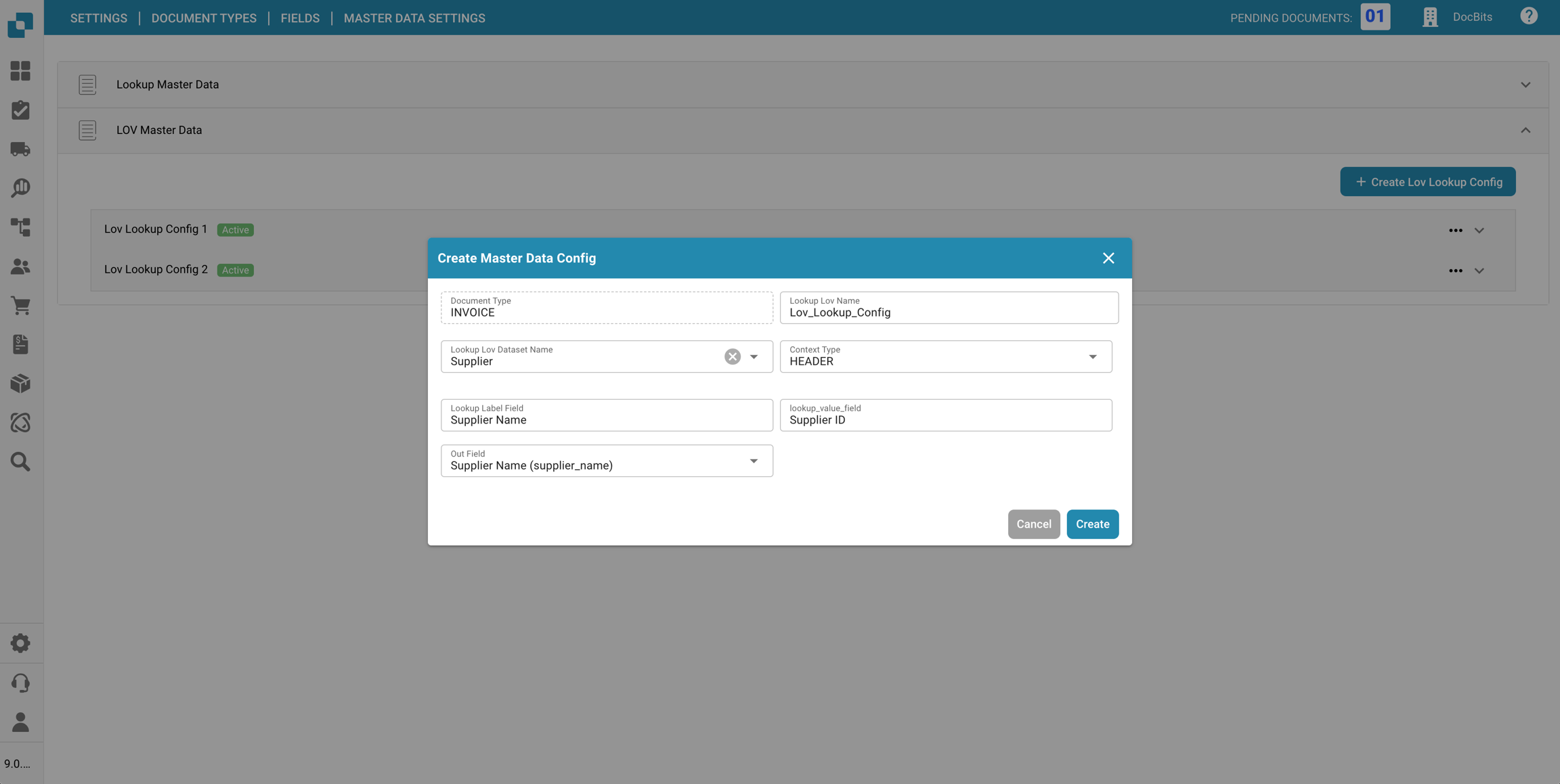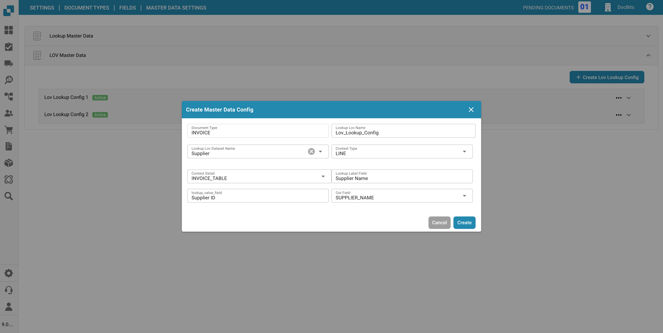 Une configuration de recherche lov définit comment les options du menu déroulant sont obtenues à partir d’une table de données de base et comment ces valeurs sont affichées et renseignées dans les champs du document.