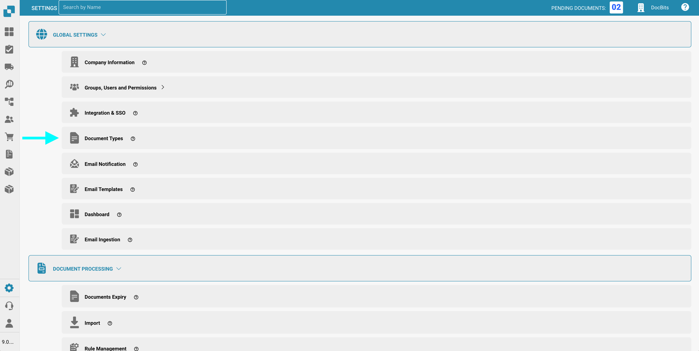 Allez à Paramètres → Paramètres globaux → Types de documents