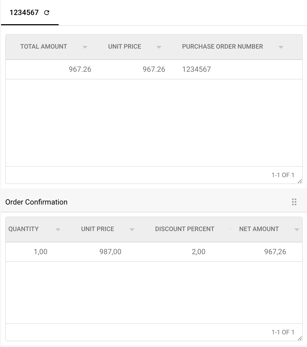 Dans ce cas, le prix unitaire (sans la remise) est extrait du document, tandis que le bon de commande dans Infor stocke le prix unitaire avec la remise appliquée. Cela entraîne un décalage dans le prix unitaire.