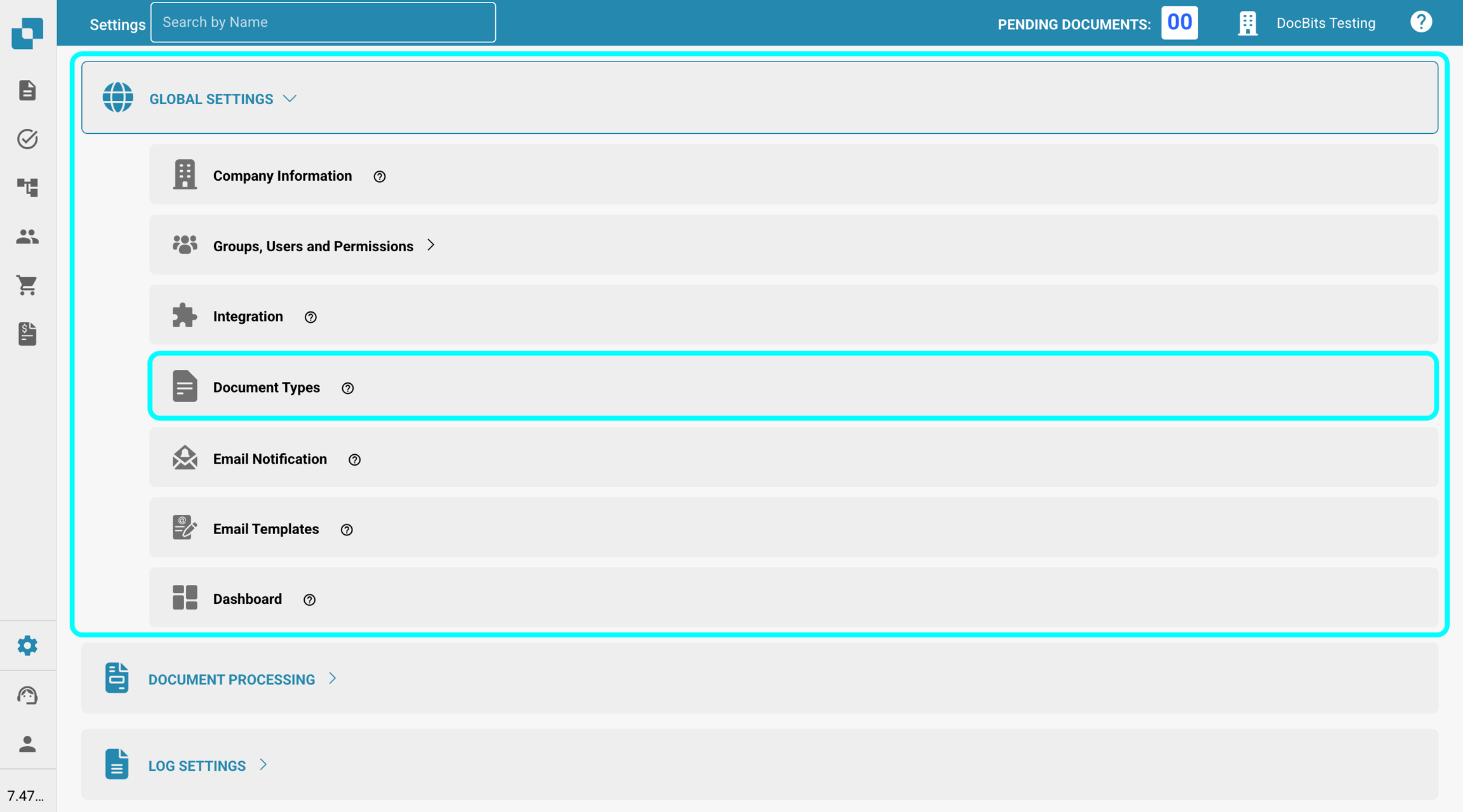 Accédez à Paramètres → Paramètres globaux → Types de documents.