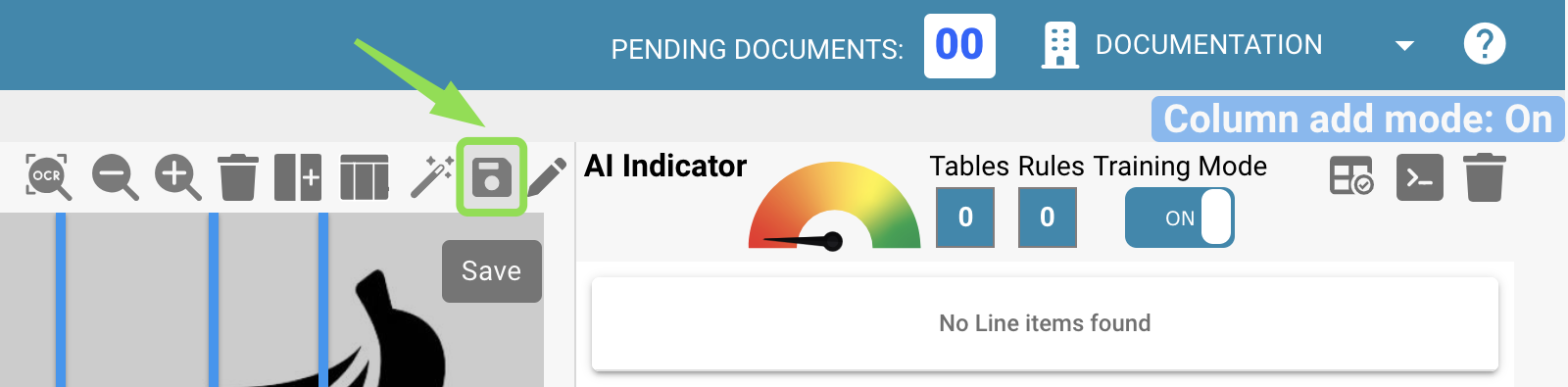 Une fois que vous avez terminé de définir toutes les tables et toutes les colonnes de votre document, utilisez le bouton "Enregistrer" pour activer vos modifications et extraire les données du document :