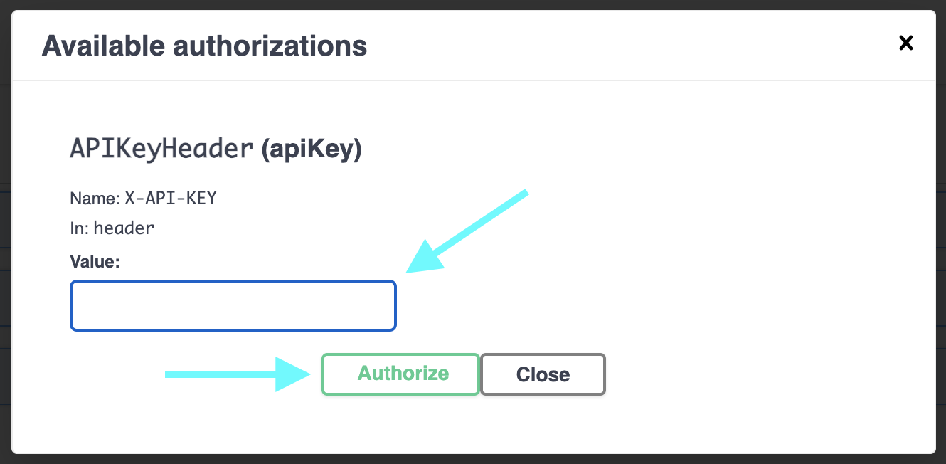 3. Entrez la clé API et cliquez sur **"Authorize"**