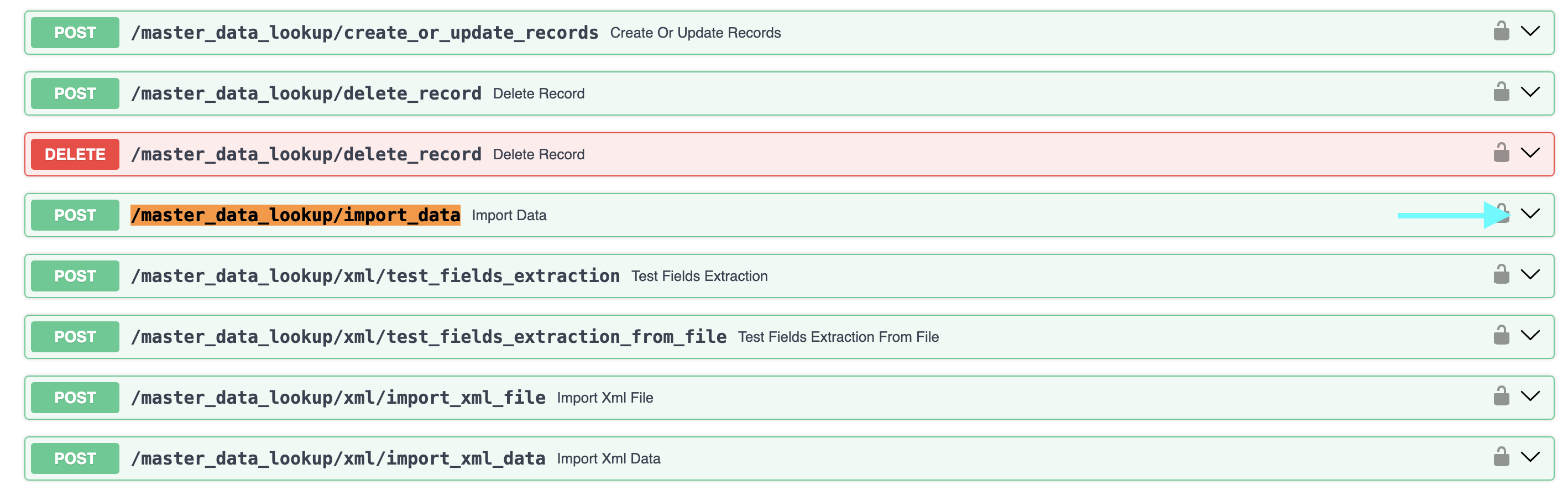 4. Appuyez sur **CTRL + F** (ou **CMD + F** sur Mac) pour ouvrir la fonction de recherche, et recherchez `/master_data_lookup/import_data`.