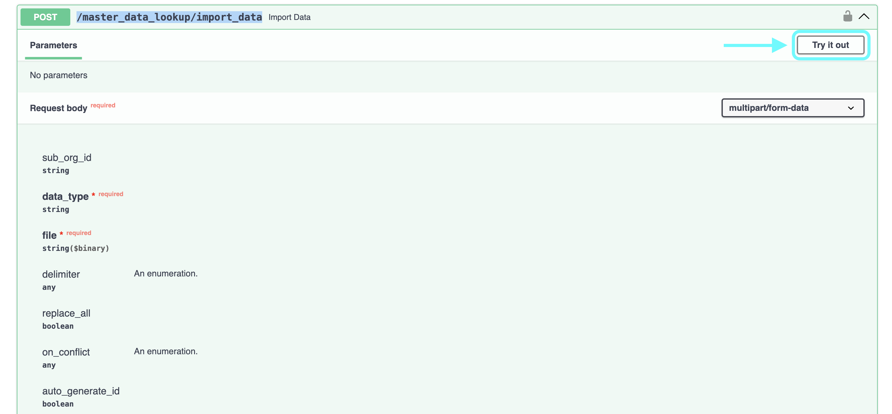 * **Remarque :** La clé API fournie dans votre demande détermine l'organisation cible et le contexte utilisateur sous lequel les données seront importées.