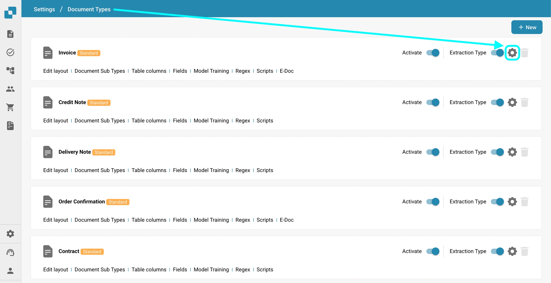 Accédez à Paramètres → Paramètres globaux → Types de documents.