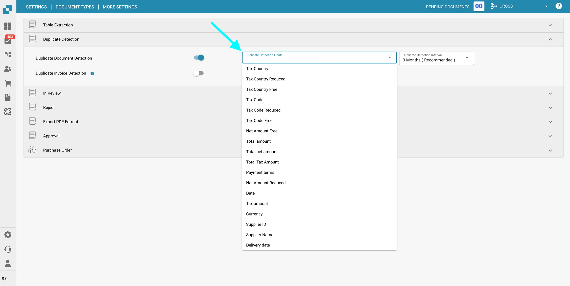 Remarque : L'utilisation de la fonctionnalité Détection des factures en double entraînera un coût de crédit supplémentaire.