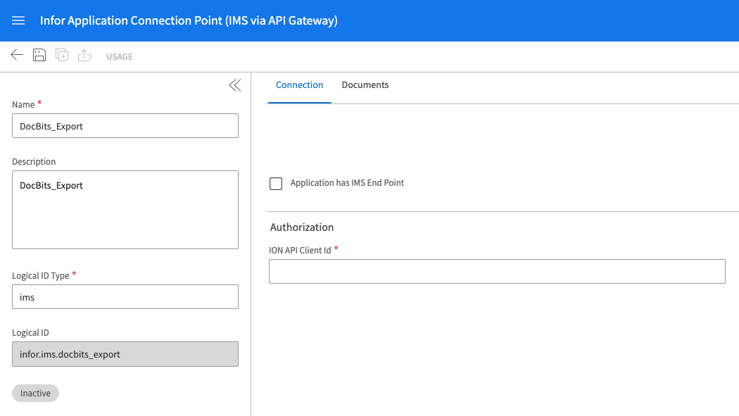ION Mapping File : Vous pouvez le trouver dans Infor OS → API Gateway → Authorized Apps. Recherchez l'application DocBits, ouvrez-la et téléchargez les identifiants.