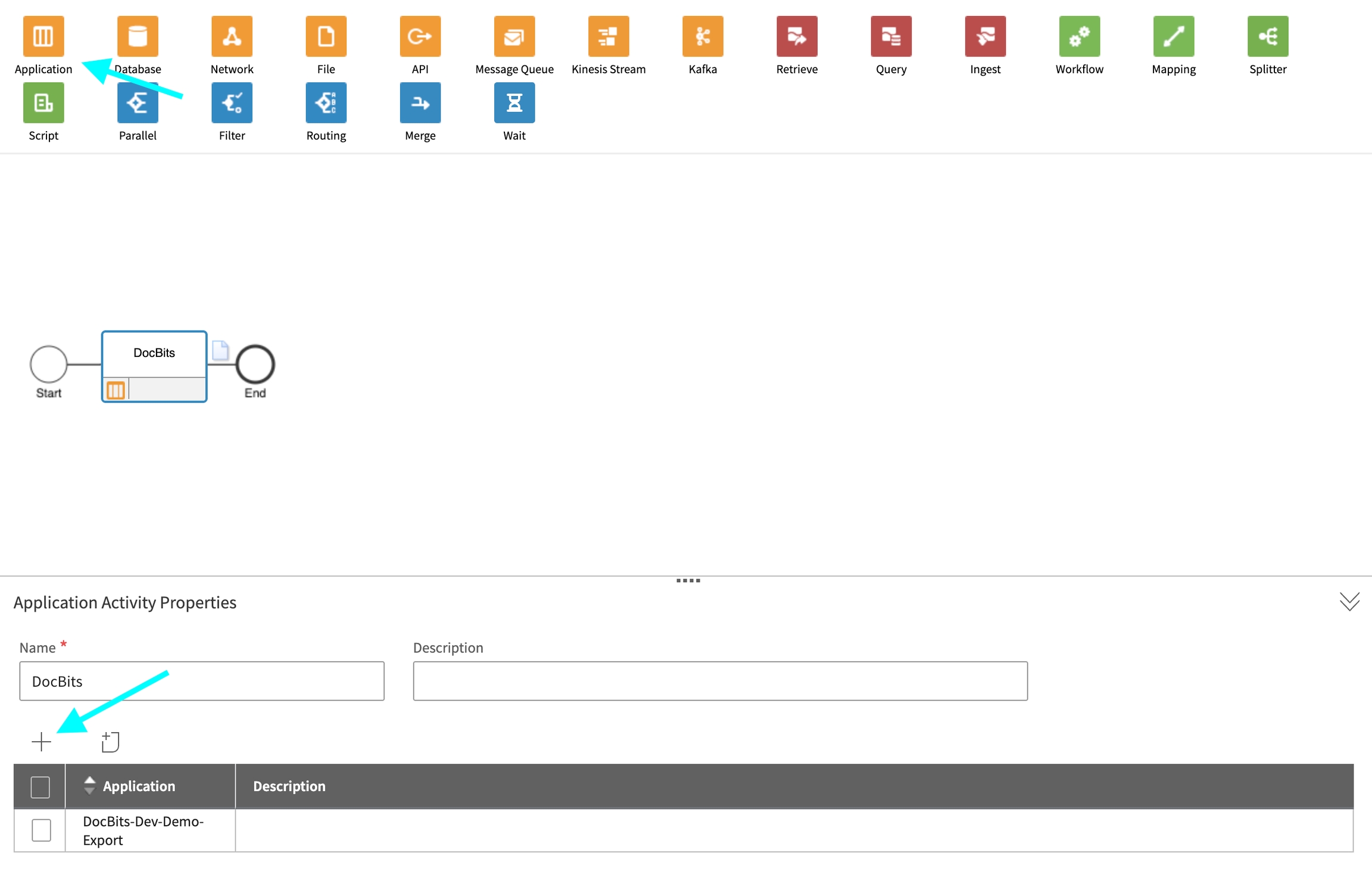 Cliquez sur l'Document Icon à côté de l'Application Node.