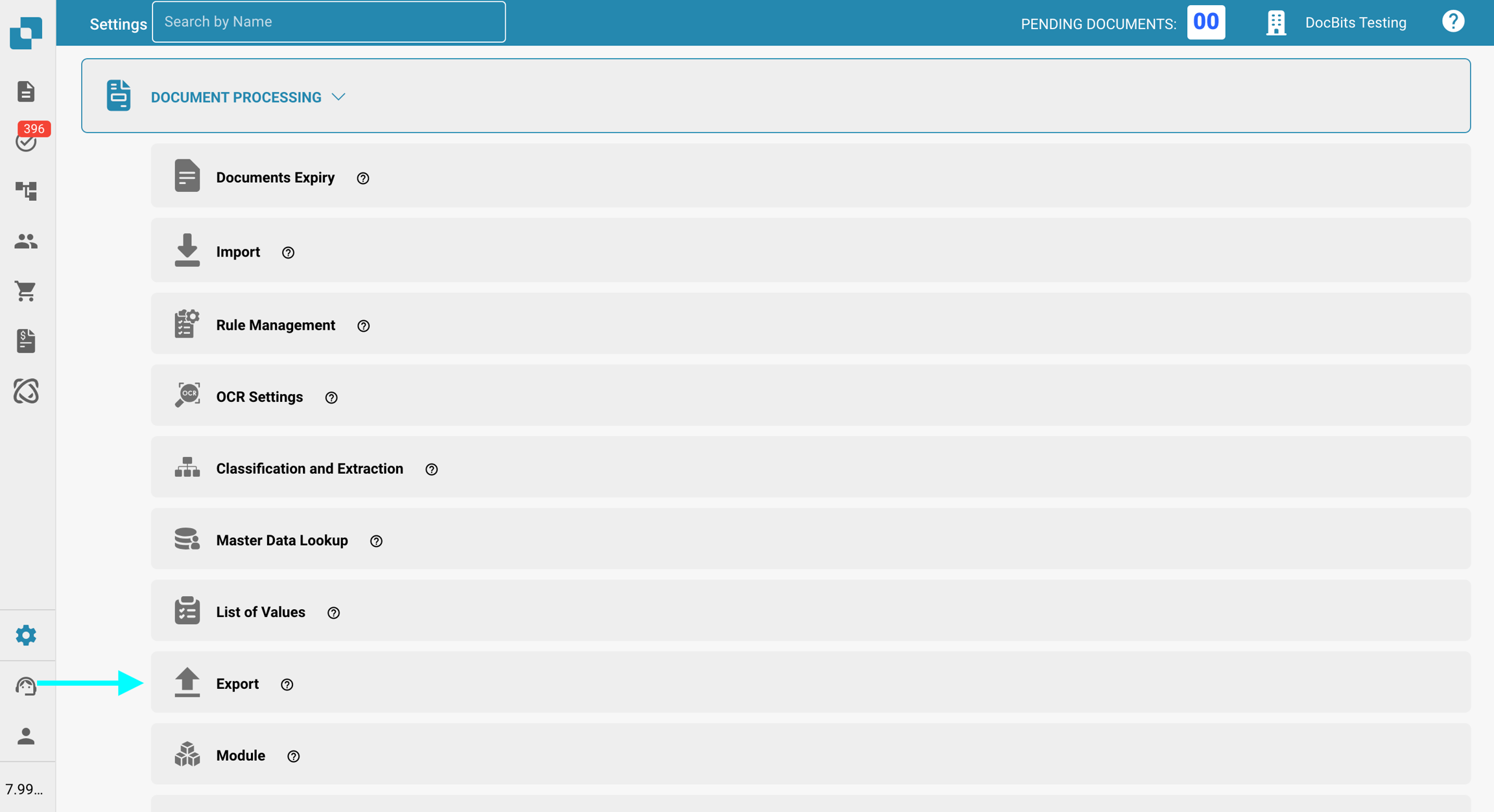 Naviguez vers Paramètres > Traitement des documents > Exporter.