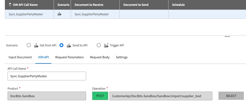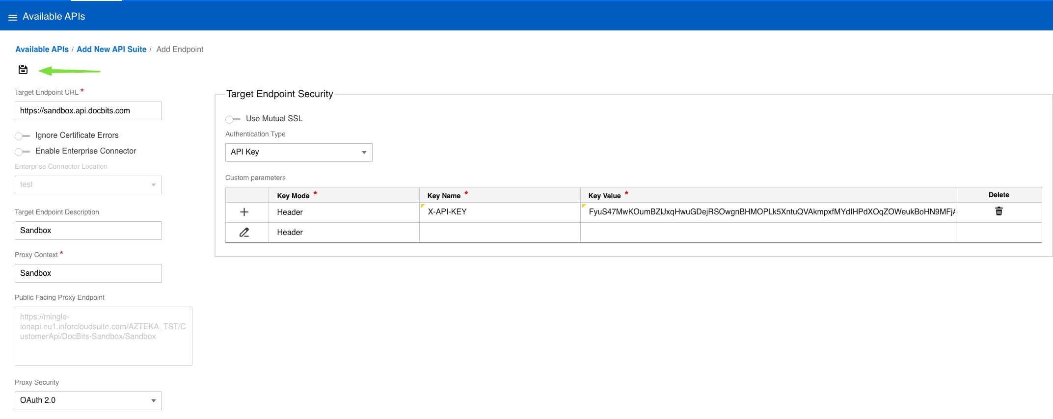 DocBits-APIION API Connector : Utilisez le Connection Point créé dans Étape 2 : Créer un API Connection Point.